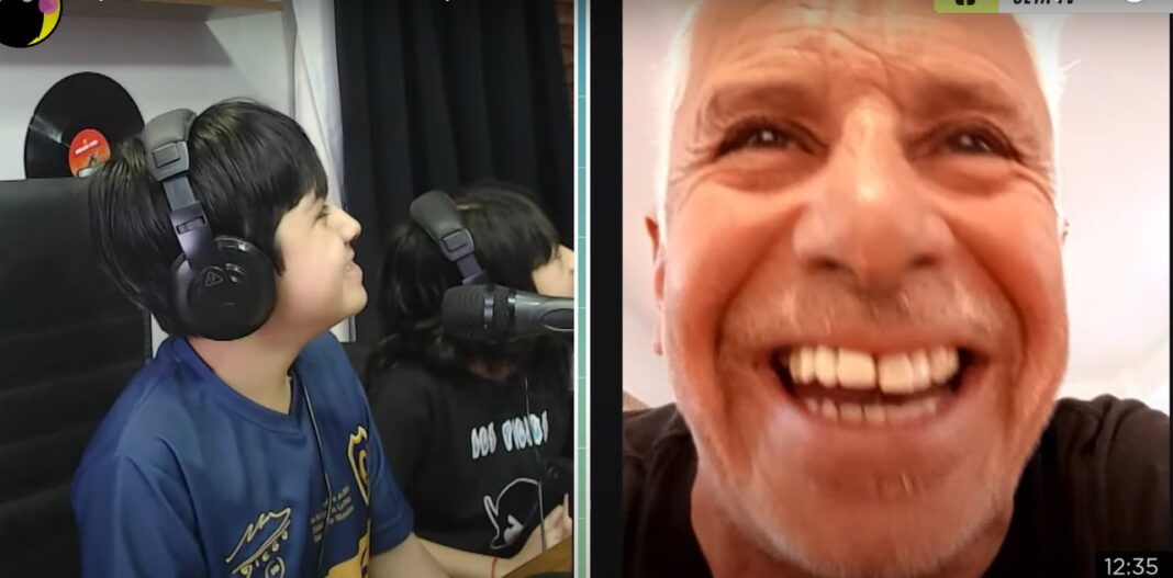 Durante la entrevista, Ezequiel repasó su fanatismo, demostró que conoce de memoria los nombres de los integrantes de la banda y se animó a cantar fragmentos de sus temas favoritos, como Los doctores crotos y Desde lejos no se ve. Pero el momento más emocionante llegó cuando apareció en vivo Micky Rodríguez, histórico bajista y fundador de Los Piojos.