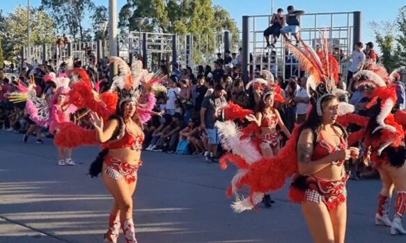 Desde las 19 horas, comparsas, murgas y caporales desfilaron por calle Mitre, entre Rondeau y Centenario, ante un gran marco de público que se acercó a disfrutar del colorido espectáculo.