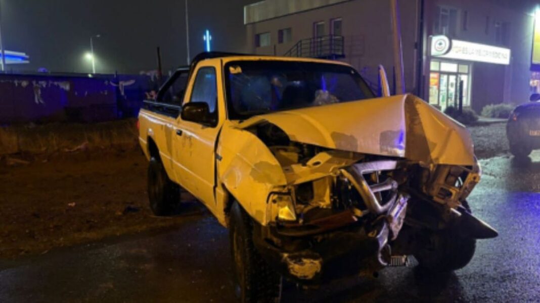 Según el informe policial, una camioneta Ford Ranger de color blanco terminó impactando contra un poste. El frente del vehículo resultó completamente dañado.